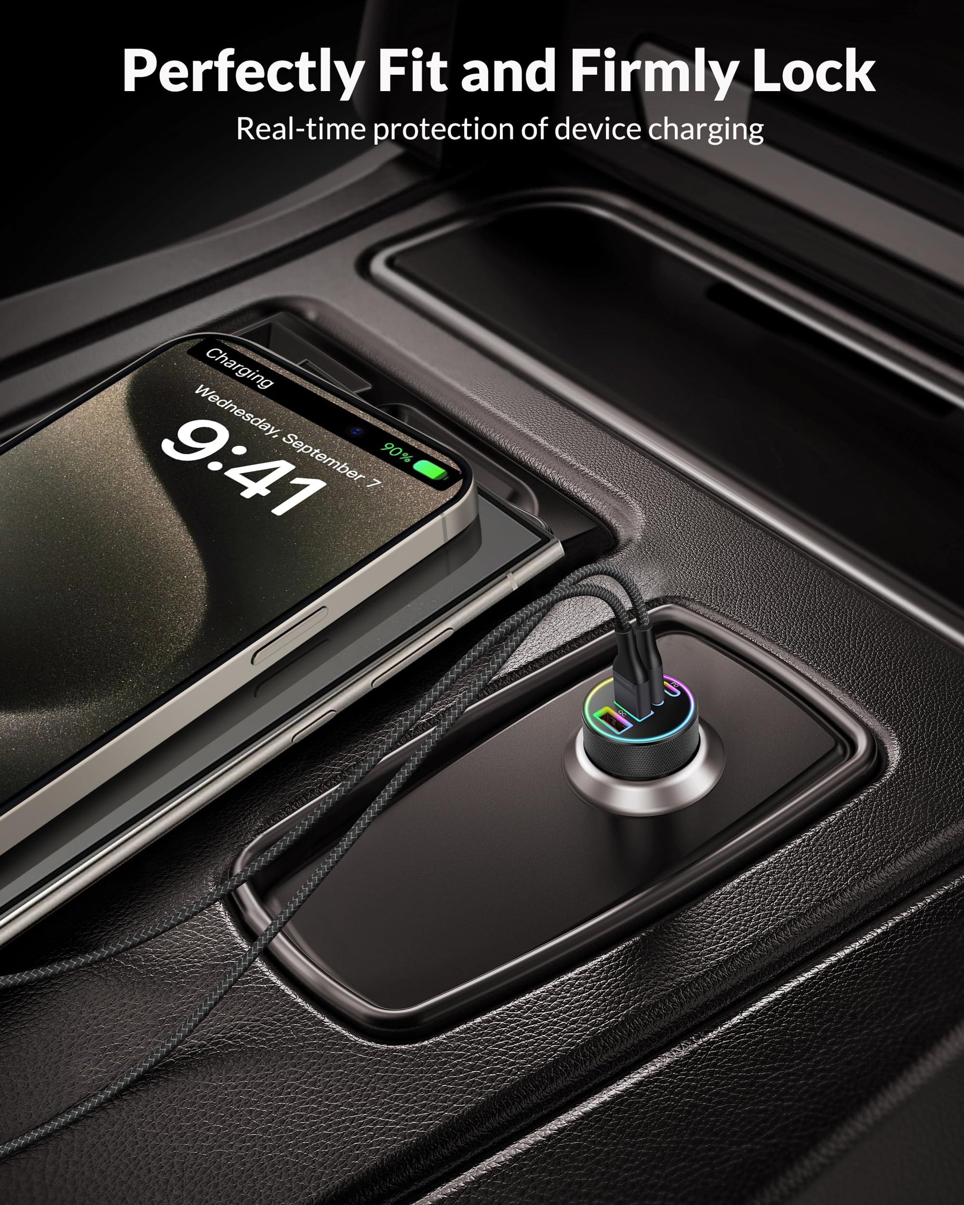 - 【Volledig compatibel en universeel】De sigarettenaansteker USB-lader ondersteunt DC12-24V brede spanning input, geschikt voor alle soorten auto-adapter poorten. Tijdens het opladen kan de oplader de stroomoutput adaptief aanpassen, automatisch compatibel met iPhone 16/15/14/13/12/11 Series, XS/XR/X/8/7/6, iPad, Samsung Galaxy S24/S23/S22/S21, Note 20/10/9, Google Pixel 9/8/7/6/5, AirPods, slimme horloges, rittenregistratie, GPS-navigatie, autostofzuiger, powerbanks en andere apparaten.
