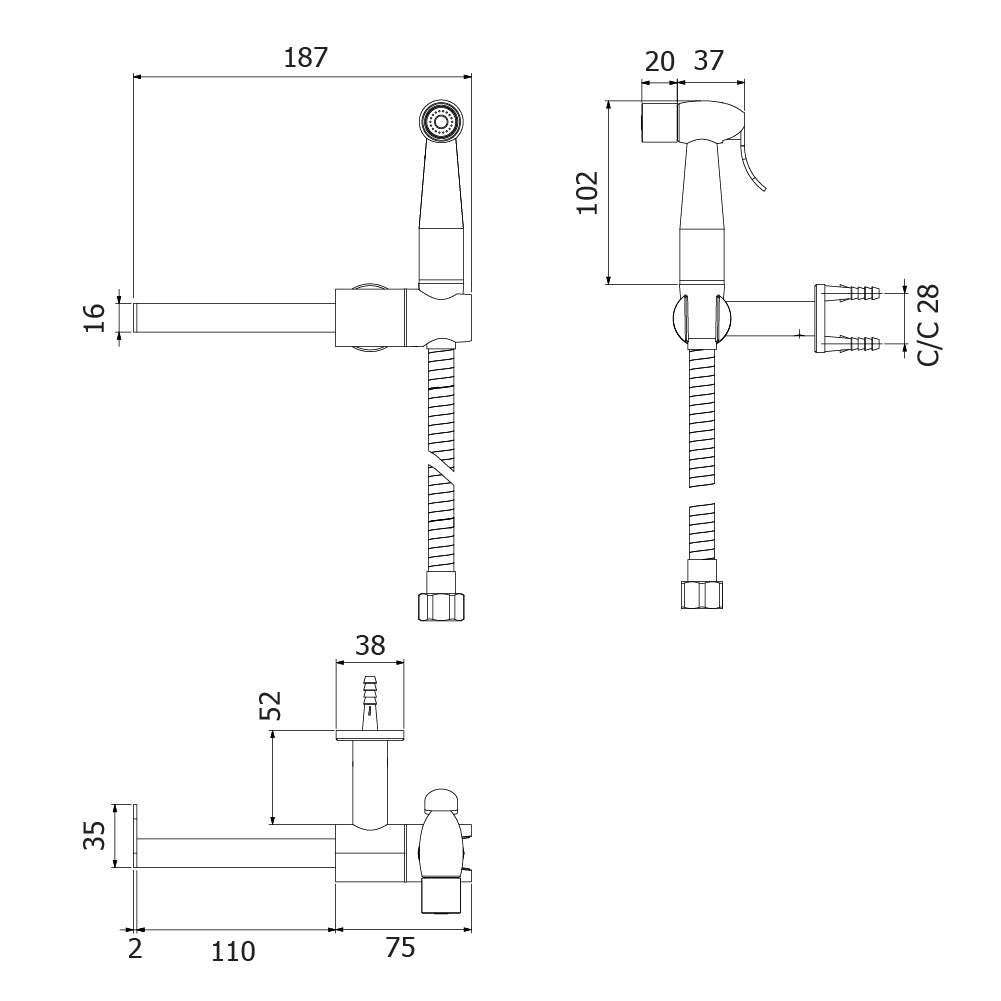 Toilet-handdouche 100% Roestvrij Staal. Geschikt voor opbouw, dus om aan te sluiten op een zichtbare waterleiding. Kan overal worden gemonteerd, dus ideaal naast uw toilet. Deze toiletdouche is ideale WC-sproeier met een compacte waterstraal die echt reinigt.