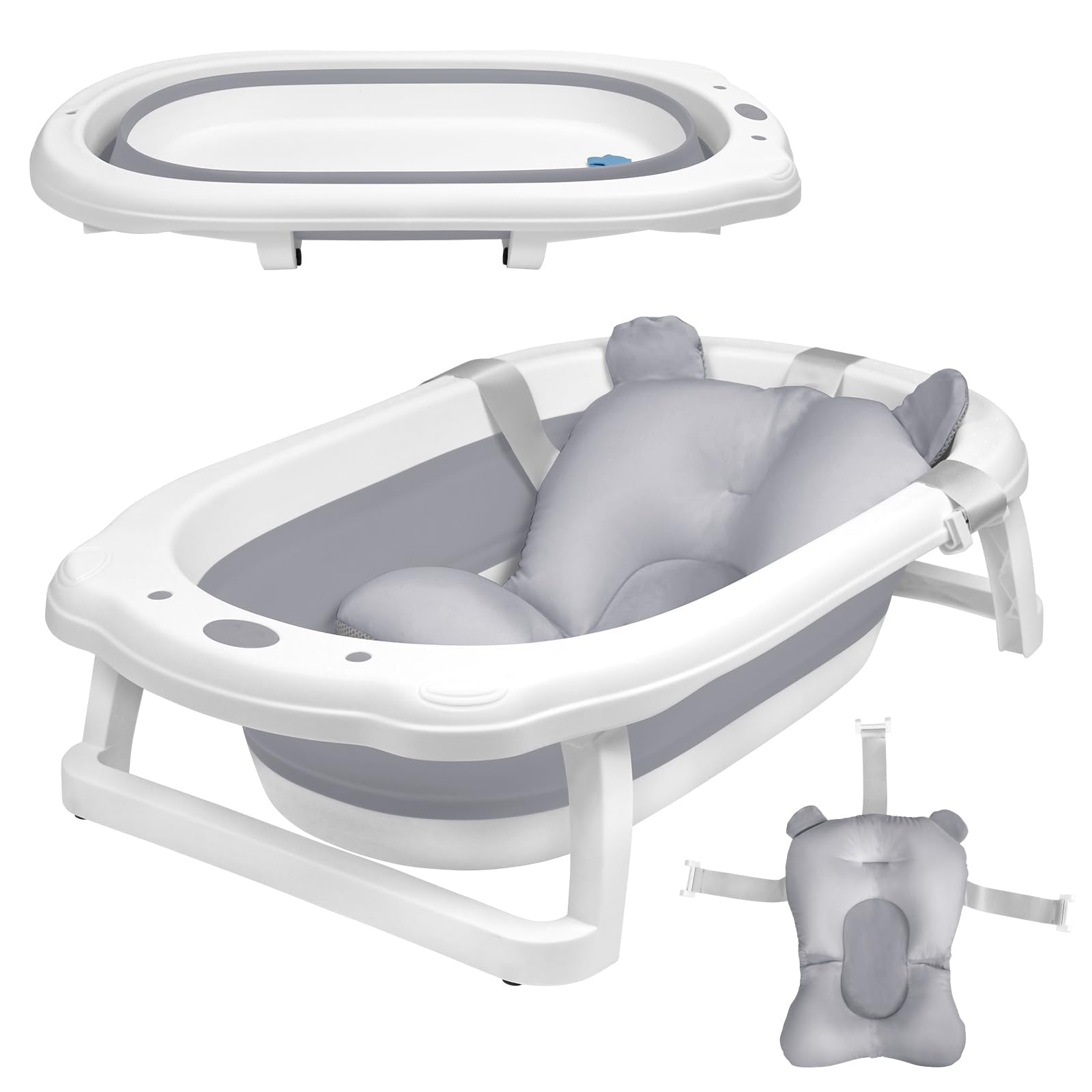 JNGLGO Babybadje, opvouwbaar, met badkussen, antislip, voor pasgeborenen en peuters, 82 x 50 x 22 cm, grijs